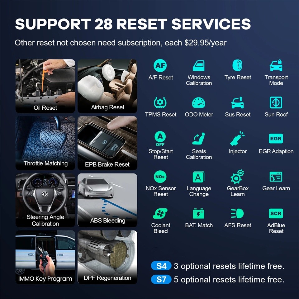 fékrendszer légtelenítés (ABS Bleed), TPMS reset, SAS kalibráció vagy DPF
